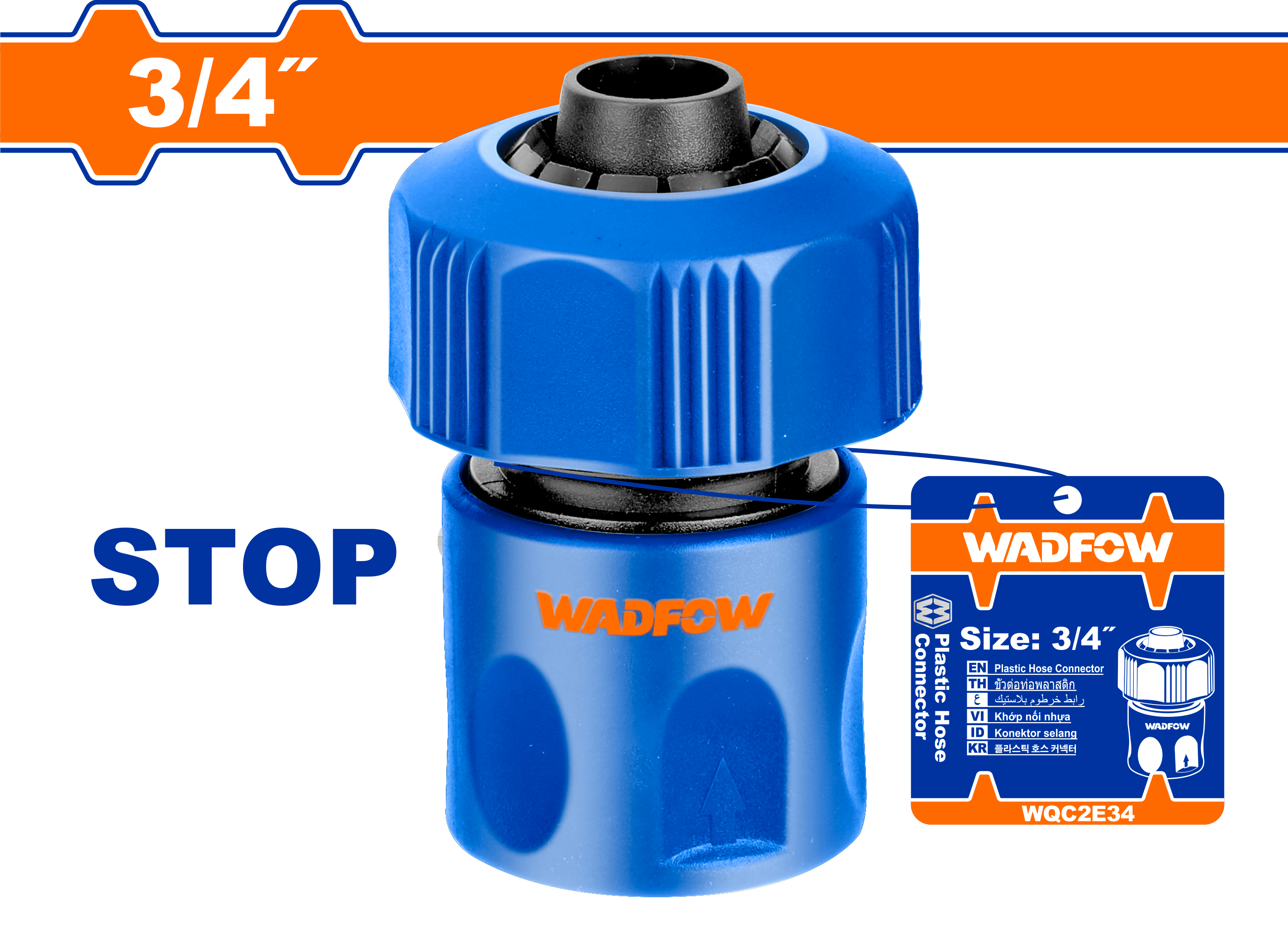 Khớp nối nhanh 3/4”. Có nút ” ngắt nước”