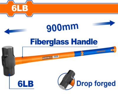 Trọng lượng: 6lb Chiều dài: 900mm Chất liệu đầu búa: thép carbon 45 # Đầu búa được rèn thả Tay cầm nhựa sợi thủy tinh, thiết kế độc đáo