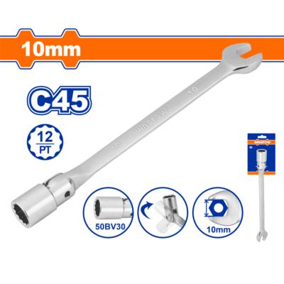 Kích thước: 10mm. Chiều dài: 173mm Chất liệu đầu tuýp: 50BV30 Chất liệu cờ lê: thép carbon 45 # xử lý nhiệt, mạ Chrome, bóng mờ